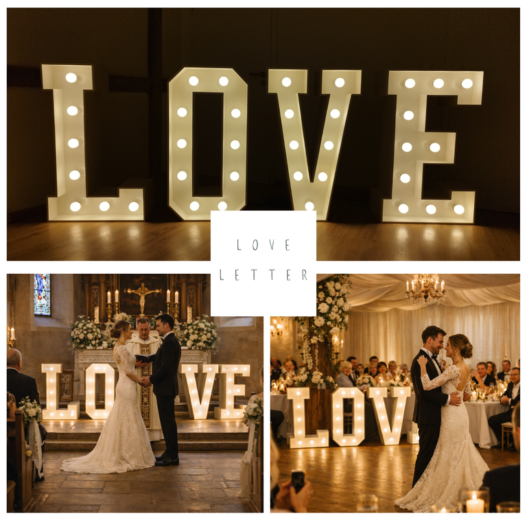 Unsere hochwertigen Leuchtbuchstaben sind ein echter Blickfang und perfekt für Hochzeiten, Jubiläen und Events.